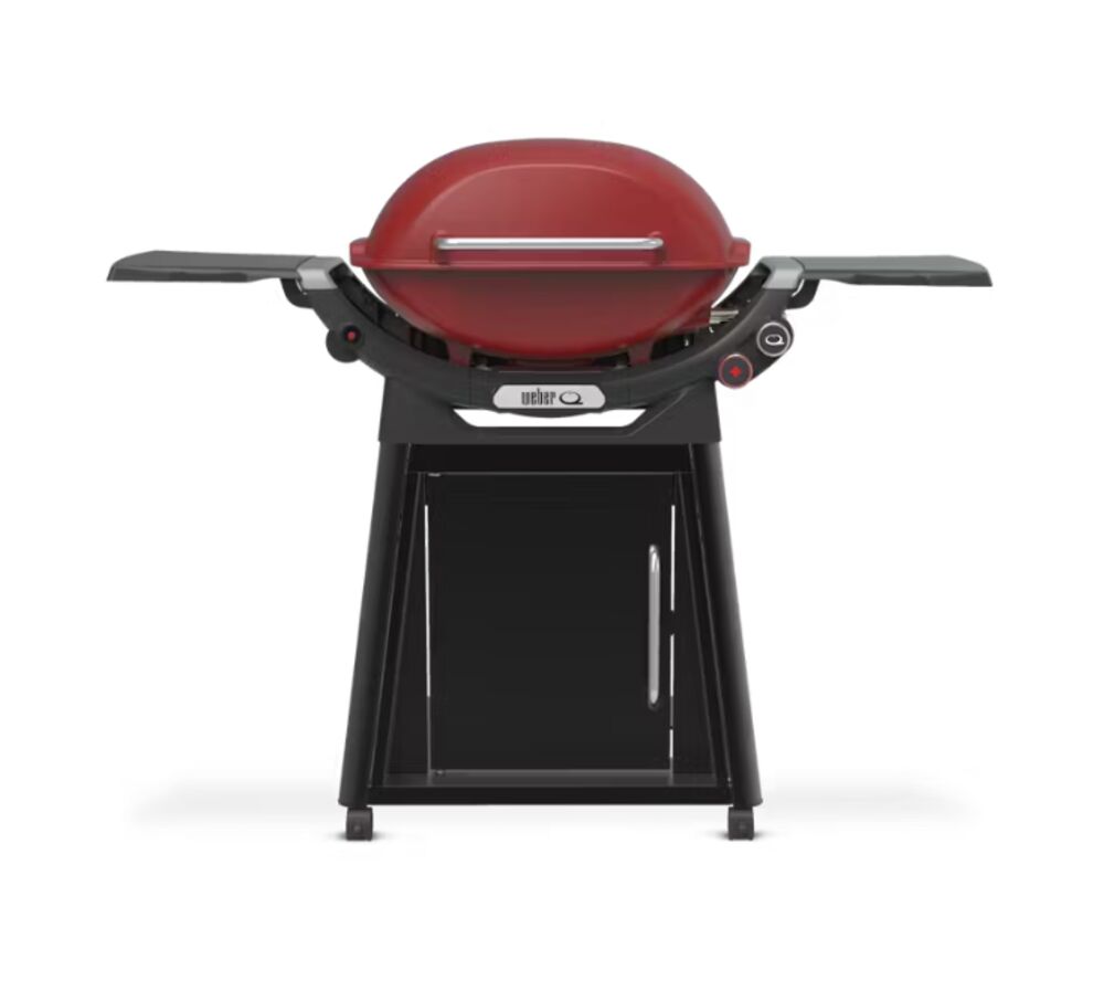 Family backyard BBQ, 2 Burners to expand cooking possibilities, Sleek and functional cart included, Large cooking area, Front door access to under barbecue storage, Available in LPG or NG, Available in Midnight Black and Flame Red (LPG) or Midnight Black (NG)