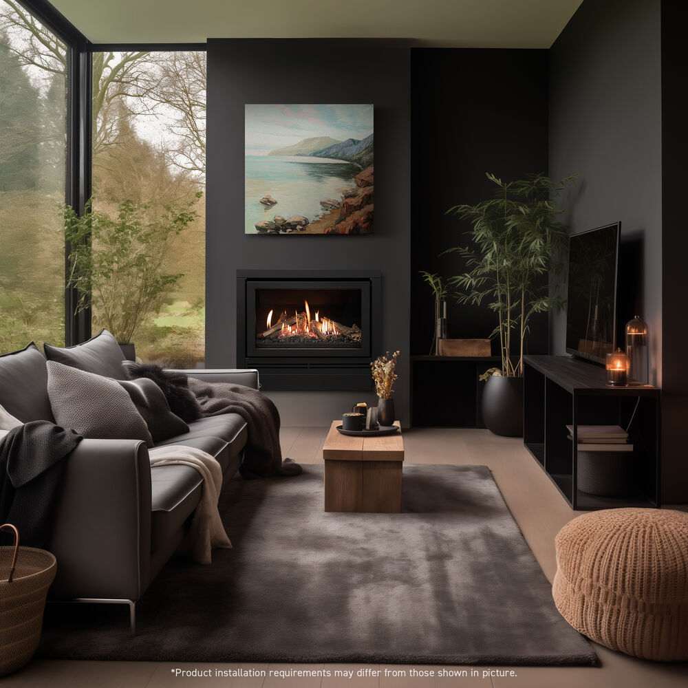 Heats up to 20 squares, Up to 5.0 Star energy rating, 84% Efficiency rating, Heat output 36MJH on high and 26MJH on low, Flueing options, Thermostat controller, Natural Gas & LPG, Zero clearance