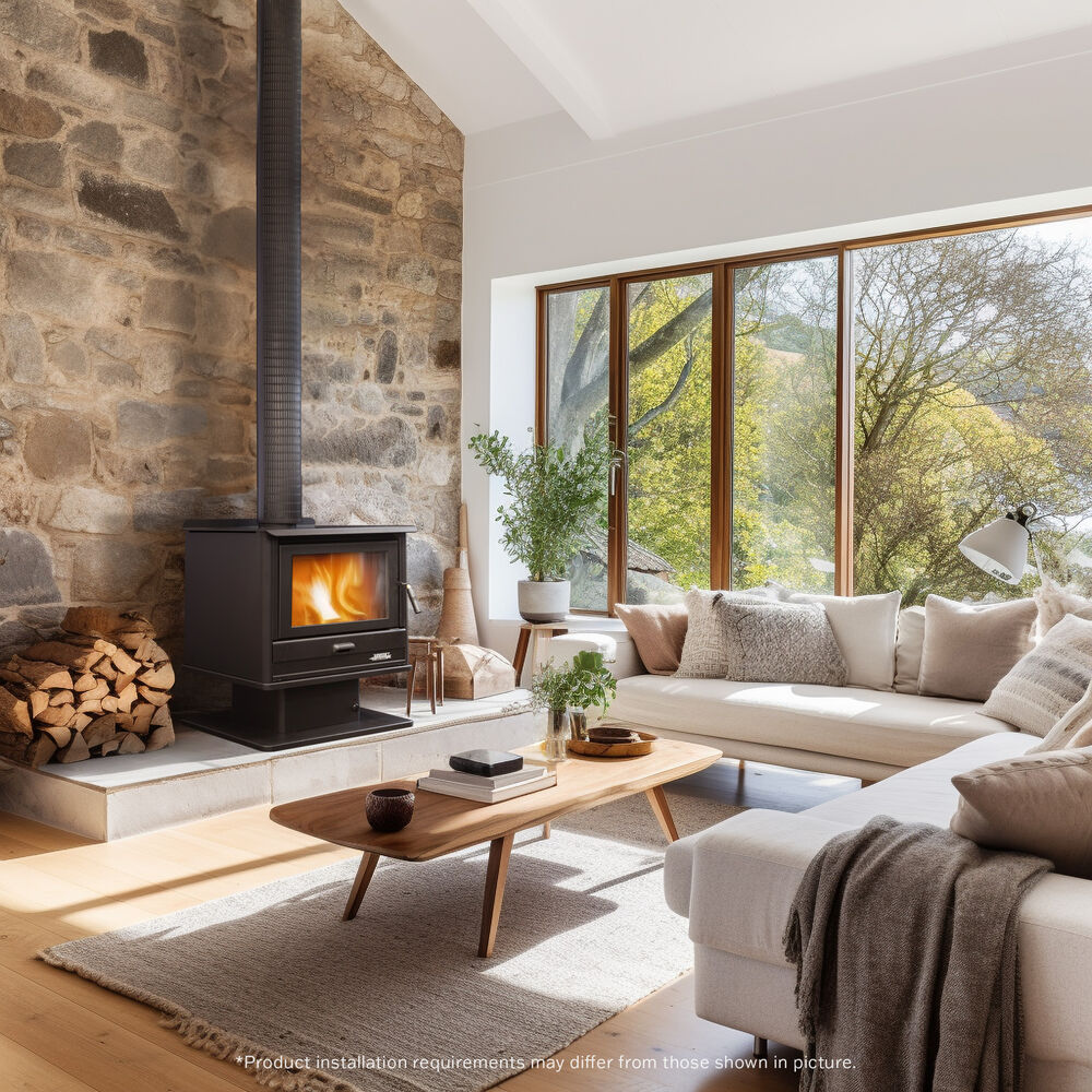 Heats up to 35 sqm, 67% Heating Efficiency,1.1 g/kg Particulate Emissions, 3 Speed Fan, Cast iron firebox liners for greater heat retention, Made in Australia