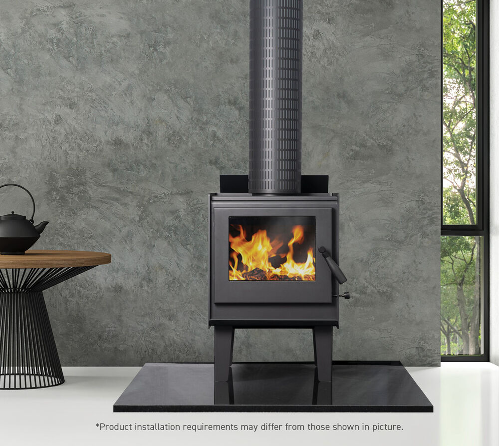 Heats up to 15 squares, 60.0% Heating efficiency, 1.3g/kg Particulate emission, Steel Trivet Standard, No fan required, Optional 30mm legs, Australian made, with 10 year firebox warranty