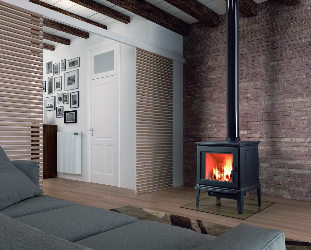 Heats up to 15-18sq, 67% Peak Efficiency, 1.5g/kg Emissions, Traditional design solid cast iron legs, White cast iton liners, Cast iron radiant heat, Large glass viewing