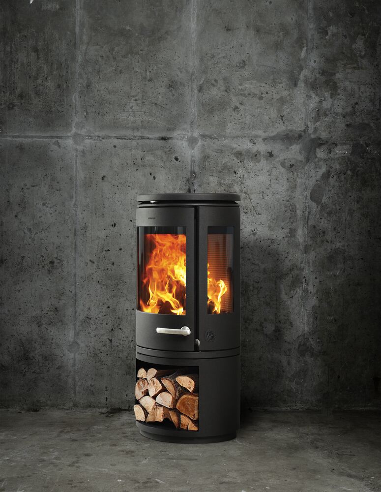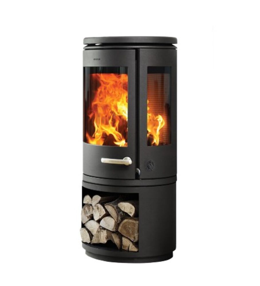 Heats up to 150m2, 73% efficiency, 1.3g/kg emissions, Large curved front windor, stainless steel hand and self closing door, Optional extra cabinet door for ‘invisible storage’