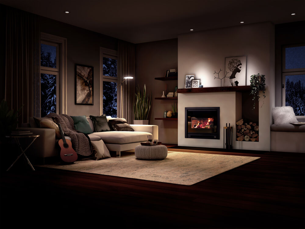 Heats up to 200m2, 61.0% Heating efficiency, 0.8g/kg Particulate emissions, Non-catalytic, Steel, Ceramic glass, Self-cleaning system, 10 Years firebox warranty, 1 year warranty on all internal fire parts